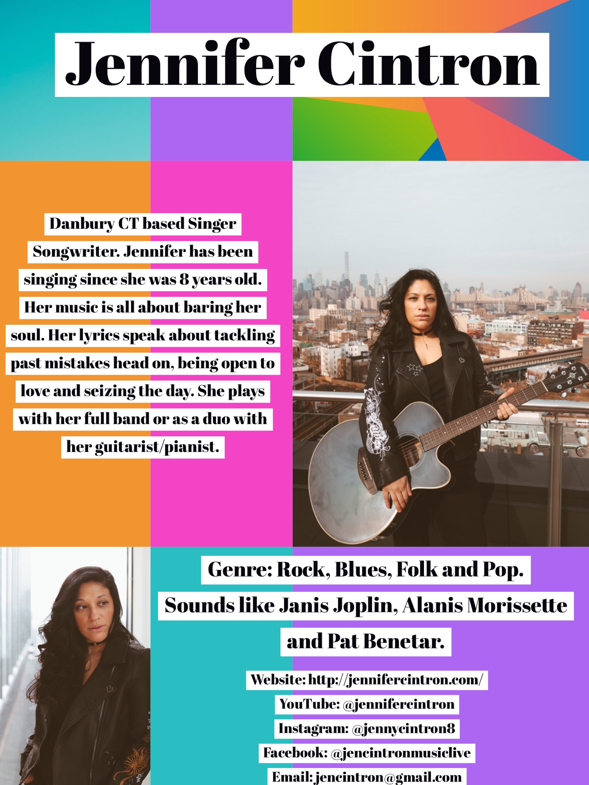 Jennifer Cintron's Music has an old school 70’s vibe, with funky beats and bass lines that blend beautifully with her bluesy soulful vocals. Her eclectic writing style draws people in with lyrics that speak about tackling past mistakes head on, being open to love and seizing the day.